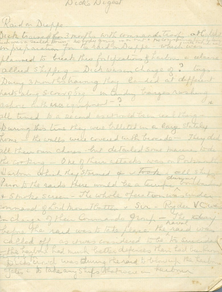 Page 1 of “Dick’s digest” as written down by Hilda Forster