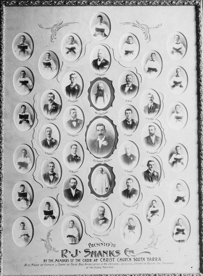 Choir of Christ Church South Yarra about 1897. Archie Beatty towards bottom right, probably Charles Gordon Beatty top left.
