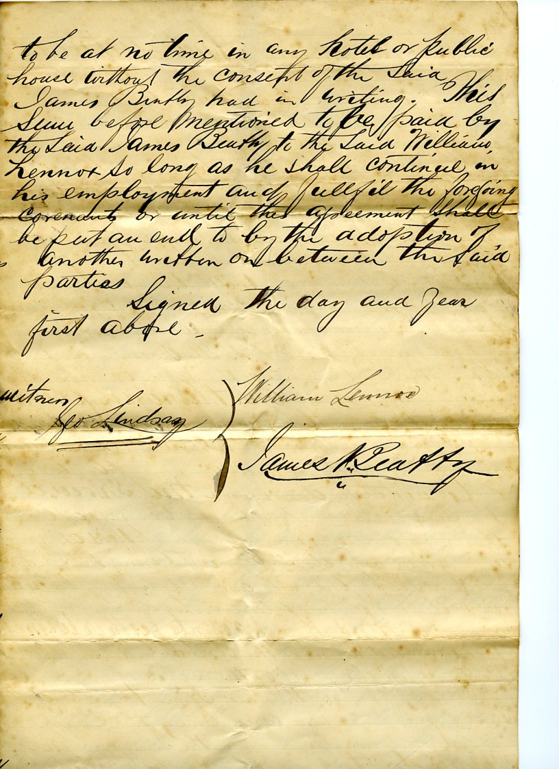1876 Agreement bn James Beatty and William Lennox re Ballina drapery business. Page 3