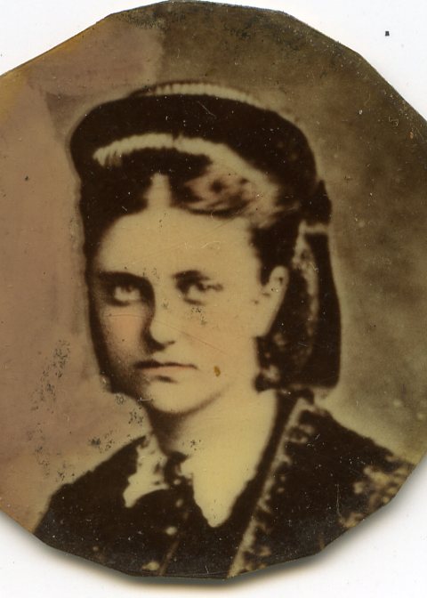 Marcella Beatty nee Paget possibly at the time of their wedding, Dublin, May 1873. From round pendant owned by Marcella. Pencilled note on reverse “C.P.C 501[rest cut off]”