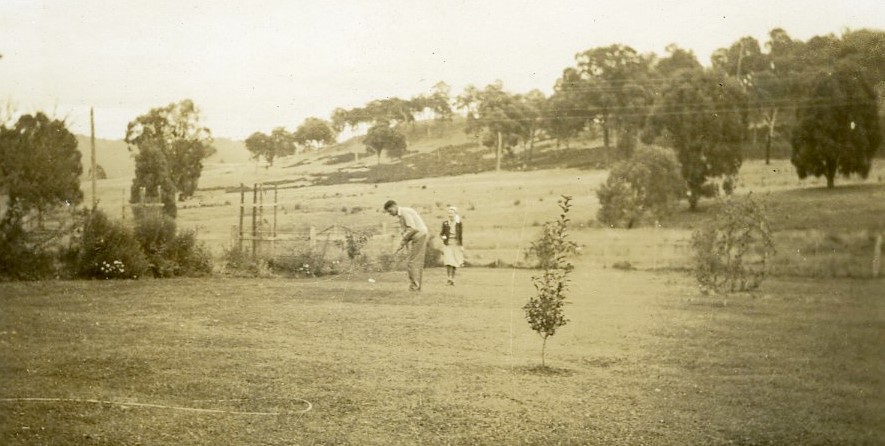 Harold and Elva putting on the lawn at Enniscrone on her first visit, late April 1947