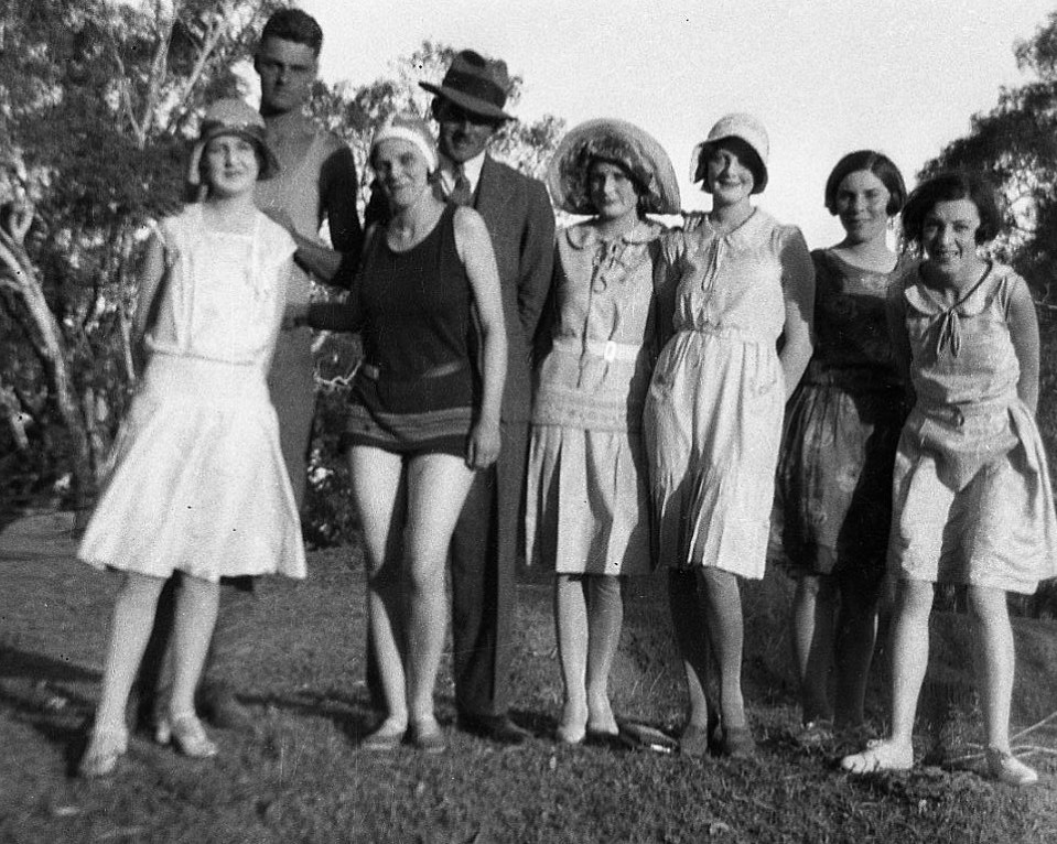 - Harold Beatty with Cynthia Collins (foreground), Cherry Singleton and others, Point Leo, 1927-1930