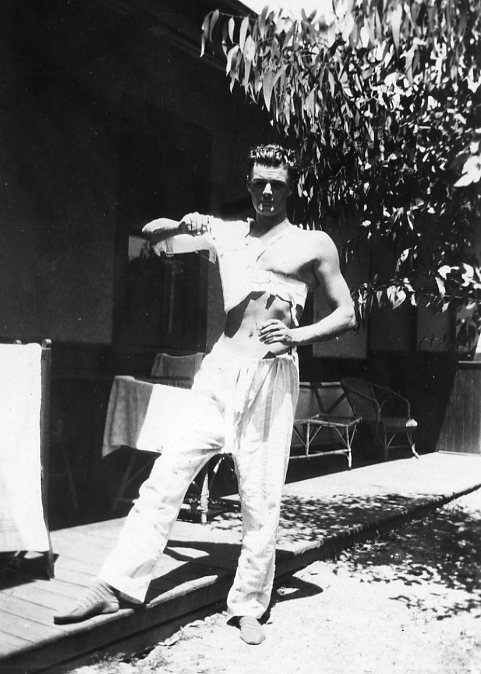 Harold at the Beatty’s Ringwood home, Jan 1930, in plaster after being thrown from a horse at Jemalong Station