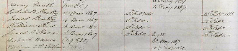 Archibald and James Beatty joined the Freemasons in Ballina on the same day in 1867. From the Freemasons of Ireland Membership Registers, 1733-1923